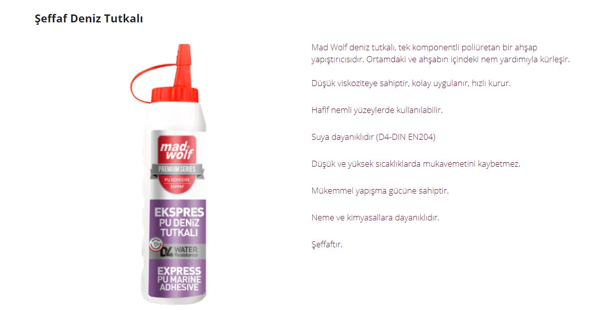 DENİZ TUTKALI ŞEFFAF MAD WOLF D4 500ML/560 GR